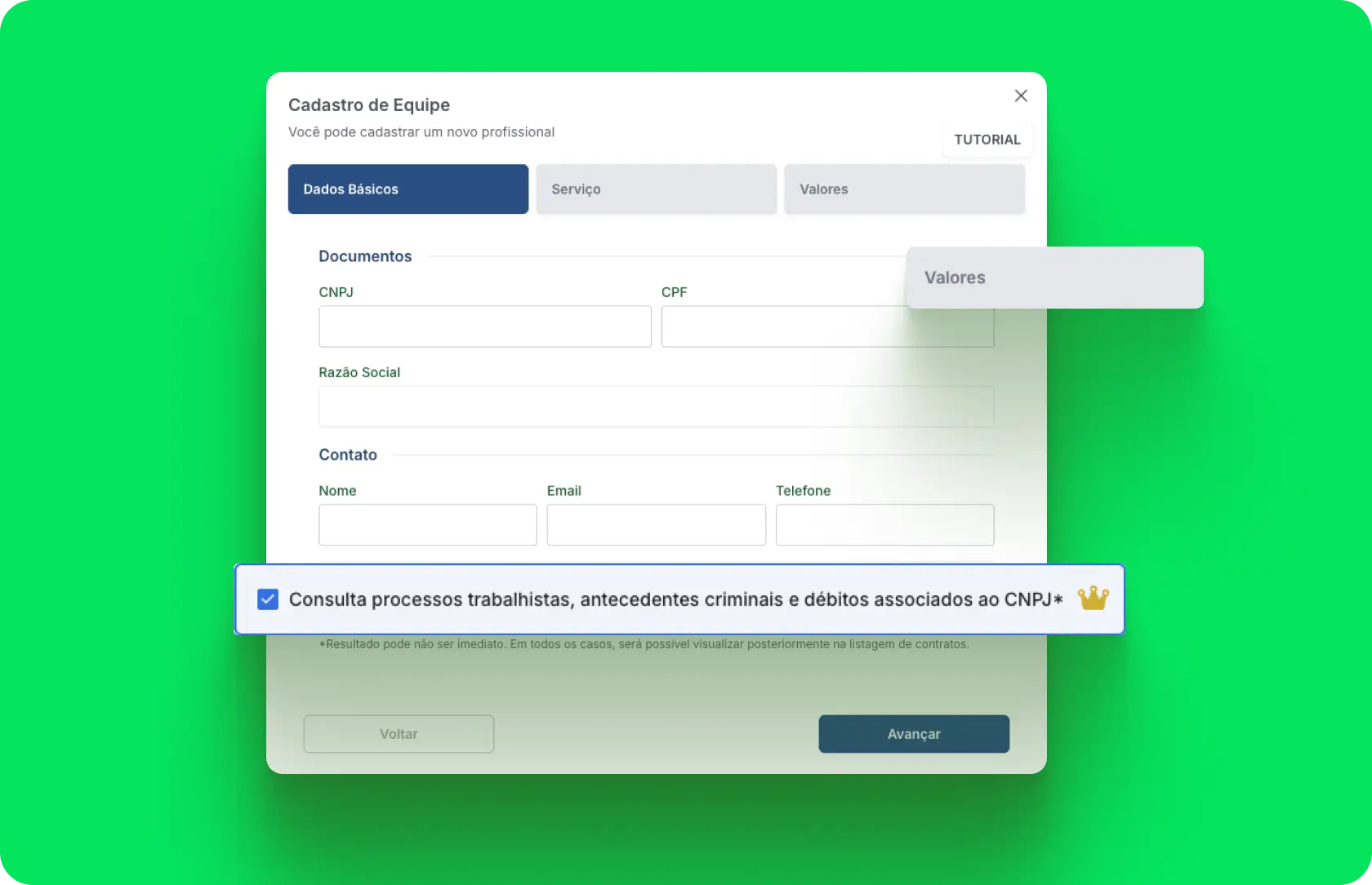 Cadastre PJs, convide o time, ative pagamentos. No primeiro fechamento você já elimina planilhas e retrabalho manual.
