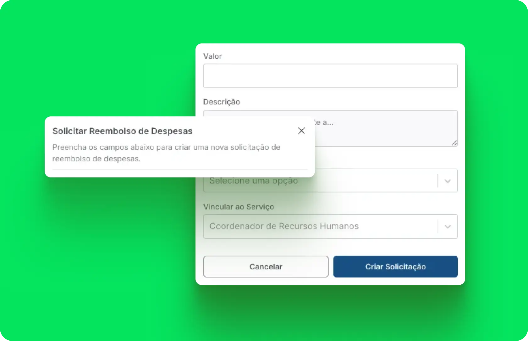 Portal próprio pra enviar nota fiscal (ou nota de débito, pra valores sem NF), pedir reembolso, solicitar férias e checar pagamentos. Sem WhatsApp, sem e-mail, sem interrupção.